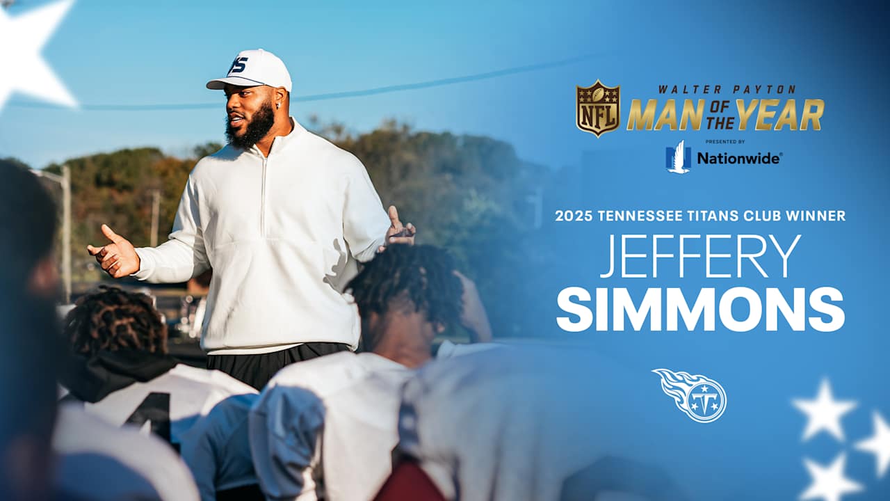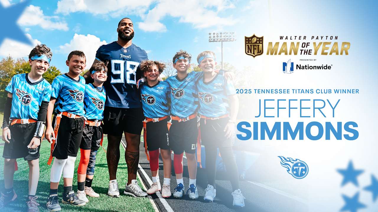 Titans defensive lineman Jeffery Simmons is the team's Club Winner for the Walter Payton NFL Man of the Year for the third year in a row. Considered one of the league's most prestigious honors, the Walter Payton NFL Man of the Year Award recognizes an NFL player for outstanding community service activities off the field, as well as excellence on the field.