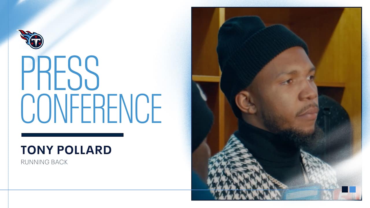 Titans RB Tony Pollard addresses reporters at Nissan Stadium after Week 13 vs. the Jacksonville Jaguars.