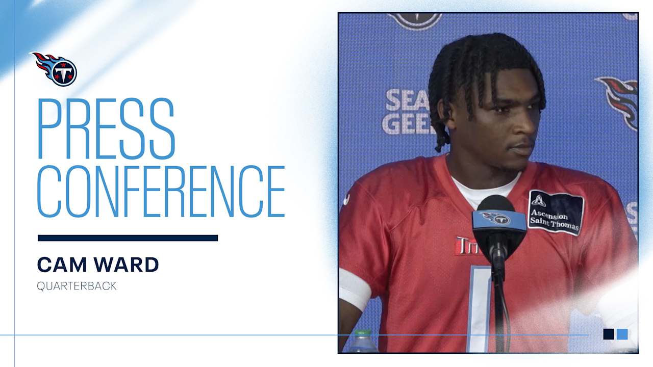 Titans QB Cam Ward addresses reporters on Wednesday at Ascension Saint Thomas Sports Park.
