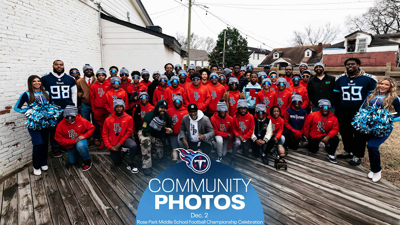 Jeffery Simmons and Sebastian Joseph Day joined Rose Park Middle School's football team for a pizza party to celebrate the team's third consecutive championship.
