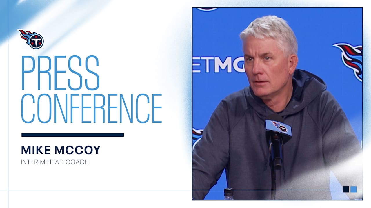 Titans Interim Head Coach Mike McCoy addresses reporters on Wednesday at Ascension Saint Thomas Sports Park.