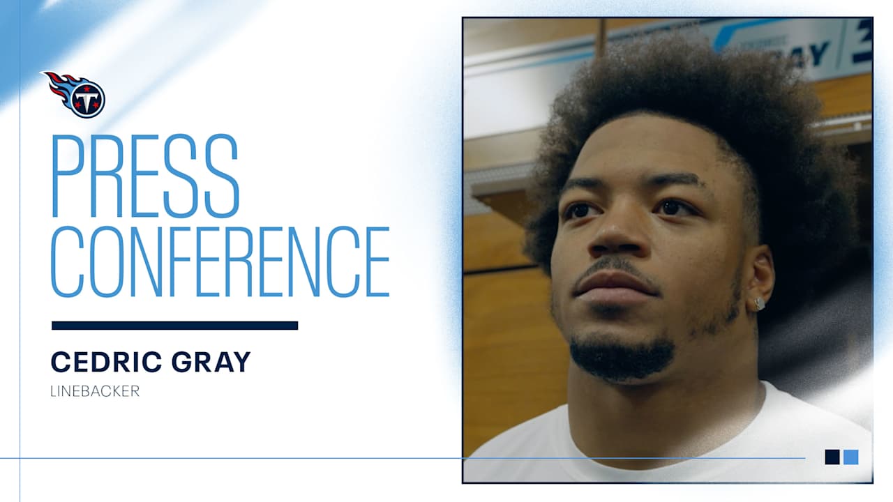 Titans LB Cedric Gray addresses reporters on Thursday at Ascension Saint Thomas Sports Park.