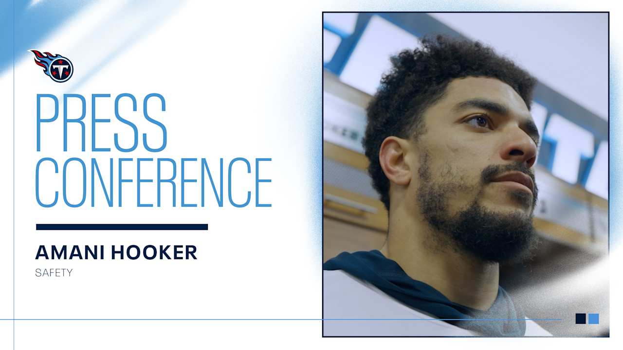 Titans S Amani Hooker addresses reporters on Thursday at Ascension Saint Thomas Sports Park.